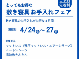 ![nishikawa[エアー]マットレス全国送料無料キャンペーン](https://www.ashita-kawano.co.jp/wp/wp-content/uploads/2024/09/ns337pkh.png)